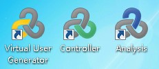 安装完成后,桌面上新增3个图标,分别是Virtual User Generator、 Controller 、Analysis 。